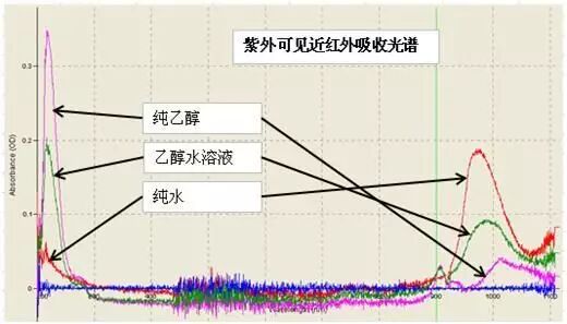 图1 乙醇、纯水及其水溶液的吸收光谱(图片来源于网络)
