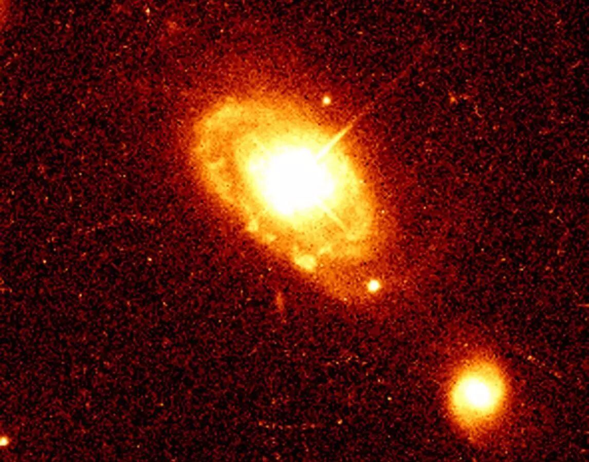 然后在另一篇文章中,我们谈到了关于类星体的亮度会随着时间的推移而发生一些变化,并且我们可以据此知道类星体的大小。我们所发现的是尽管类星体能够亮如星系,但它们的个头却相对非常小,仅有数光年。这意味着我们可以排除超新星和核聚变作为其能量源。