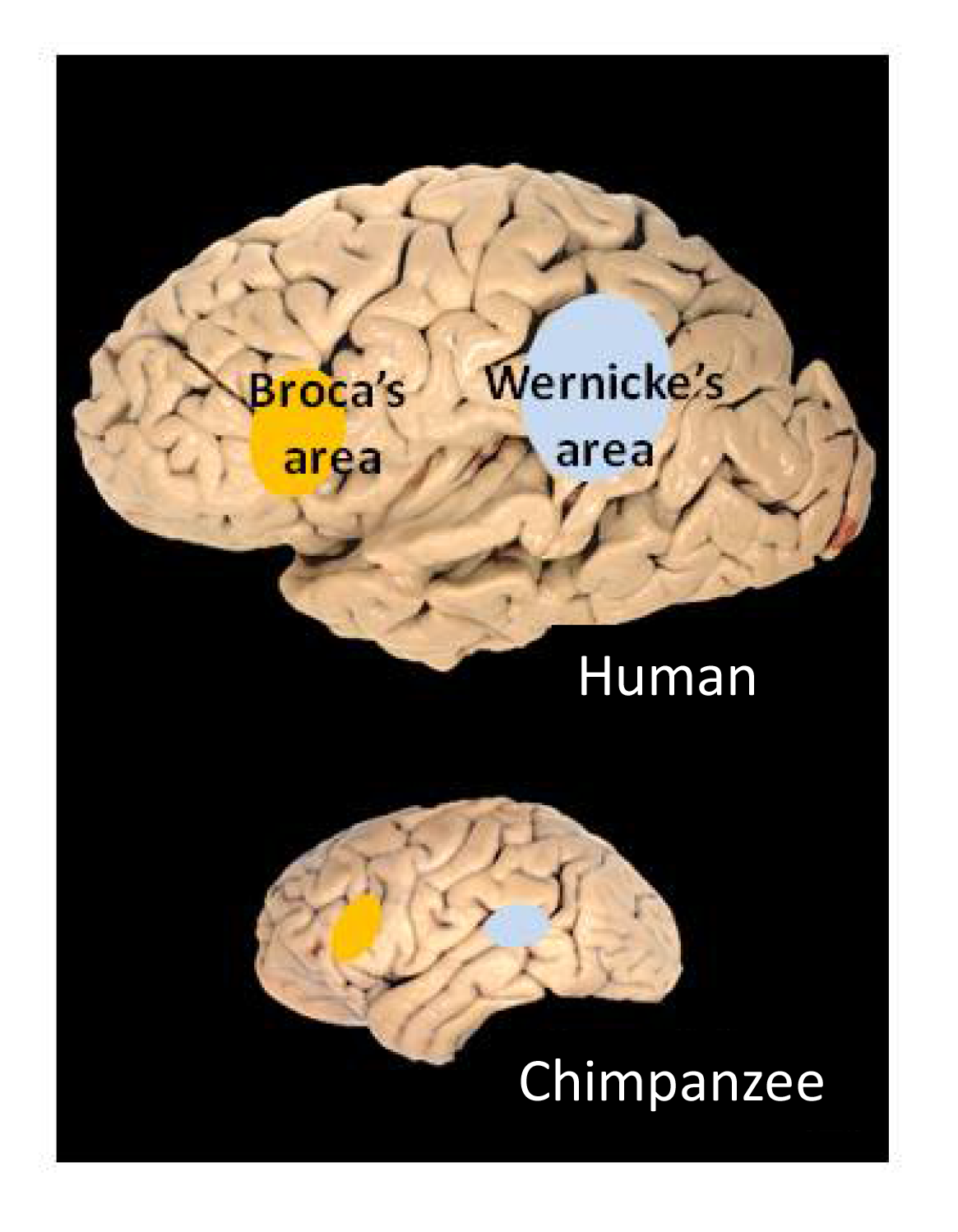 包括脑电图(EEG)在内的测试结果反复验证了之前的结论,也就是 Genie 的大脑左半球没有形成语言能力,正常人左半球的语言中心(如布罗卡区和韦尼克区)萎缩了,因此她的右耳对语言没有反应。 人类大脑负责语言功能的主要是左半球的布罗卡区(左)和韦尼克区(右)。图片来源:wikimedia