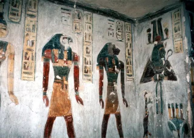 帝王谷 内部壁画 图中可以看到眼镜蛇、圣甲虫、阿努比斯等形象