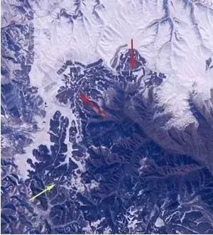 ▲国际空间站(ISS)在2004年11月24日拍摄的内蒙古境内的长城照片。箭头所指是可以看见的长城部分。图片来源:NASA