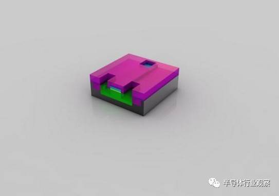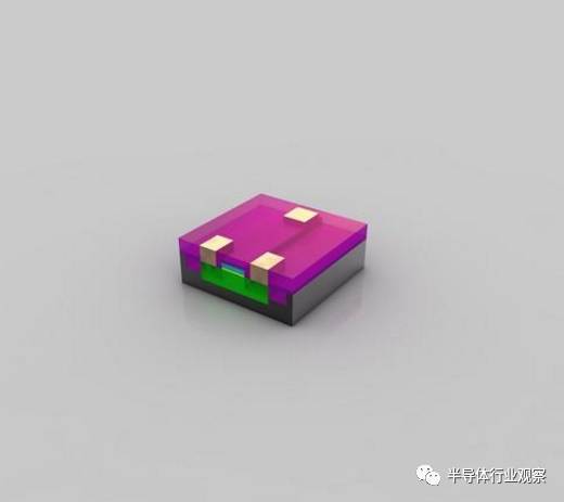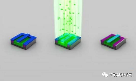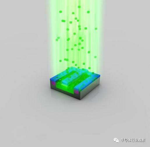 离子注入完成后,光刻胶也被清除,而注入区域(绿色部分)也已注入了不同的原子。这时候的绿色和之前已经有所不同。