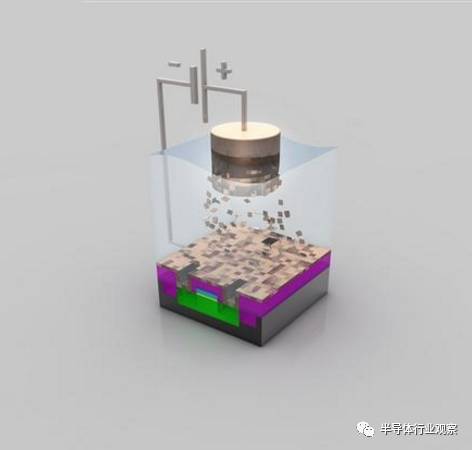 电镀铜层:在晶圆上电镀一层硫酸铜,将铜离子沉淀到晶体管上。电镀完成后,沉积在晶圆表面的铜离子形成一个薄薄的铜层。