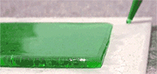 这张图来自一个超疏水涂层材料的宣传短片。这块板的四周涂有超疏水涂层,在中间没有涂层的部分,材料与水的亲和性比较好,水可以铺展开来,而在有涂层的部分,材料与水彼此亲和性很差,因此旁边的水就呈现出向内回缩的趋势,减少与疏水涂层的接触。
