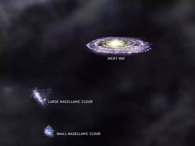为什么银河系会弯曲呢?天文学家认为这主要是由我们银河系的两个邻居——大、小麦哲伦星云——导致的。