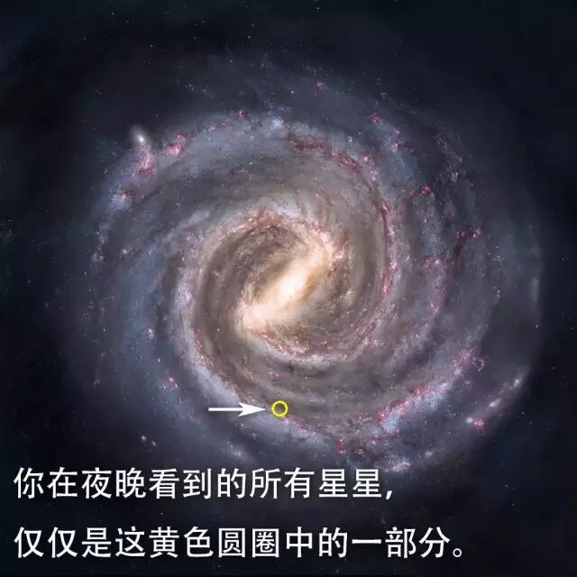 图13、你在夜晚看到的所有星星,只是图中黄色圆圈内的一部分。