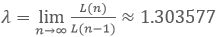 随着n的增大,相邻两项数字长度的比值 L(n) / L(n-1) 会越来越接近一个固定的数。这个数就称为“康威常数”,用 λ 表示,康威证明了它是一个无理数。