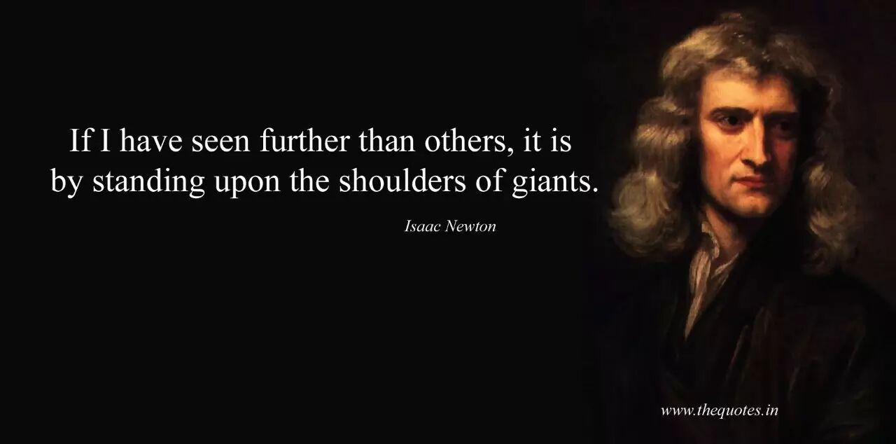 如果说我看得比别人更远些,那是因为我站在巨人的肩膀上。牛顿的思想受到了哥白尼、伽利略、笛卡尔、培根、洛克和摩尔等人的影响。(图片来源:thequotes.in)