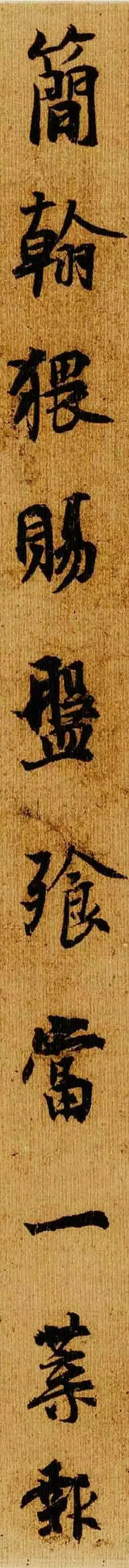 《韭花帖》结字中宫内敛,与欧阳询字略有相似。中宫收紧式与通篇字距、行距拉开的处理极为协调,营造出更加疏阔的氛围,这是明显的文人士大夫痕迹,不放纵,不恣肆,追求一种内在的、文雅的精神气质。