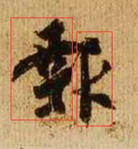 从左边起笔是汉字的书写顺序,杨师利用这一点,把左边的部分索性写大:或长、或肥、或宽,对右边形成了挤压和侵占。