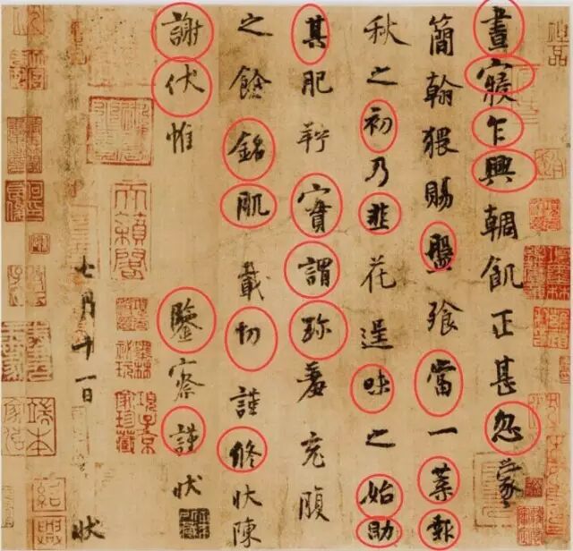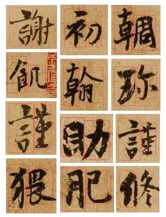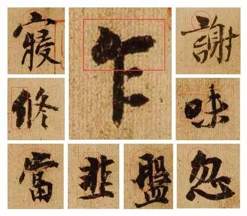 上图是在帖中选了一些非常有代表性的字。每个字起笔重。