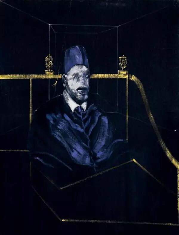 所谓肖像画,人脸的描摹必然是画像的重心。蒙克的《呐喊》是我们烂熟于心的经典作品。贝尔廷在本书中的分析案例,采用了弗朗西斯·培根作于1951年的《教皇》,这幅作品与蒙克的《呐喊》很相似,都采取了面相扭曲的呐喊形态。贝尔廷选择培根的作品的原因,除了阐析这种对人脸的典型处理方式之外,还在于培根的《教皇》其实是对委拉斯凯兹的传统肖像绘画《教皇》的批判,培根以尖叫的动感姿态表达被封闭的生命的幻象。