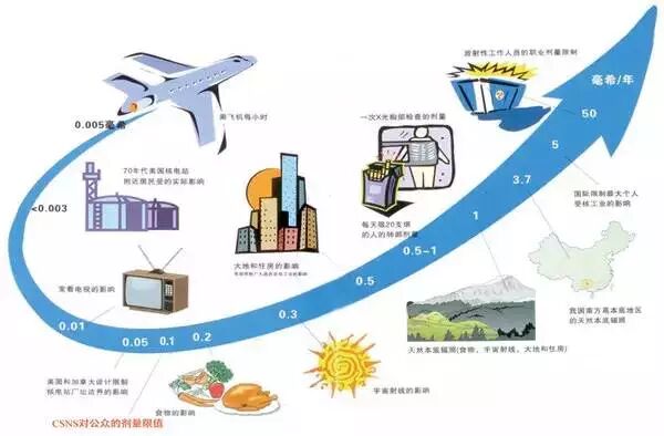 即使工作人员,在工作场所5年所接受的剂量也仅与进行1次X射线胸透所接受的剂量相当。