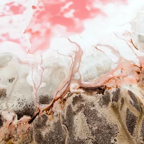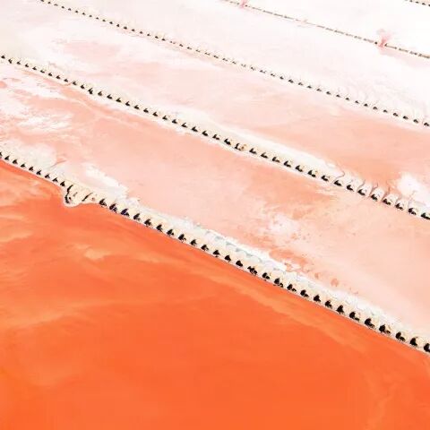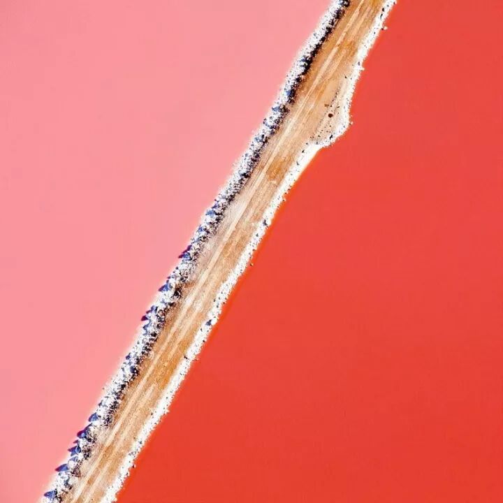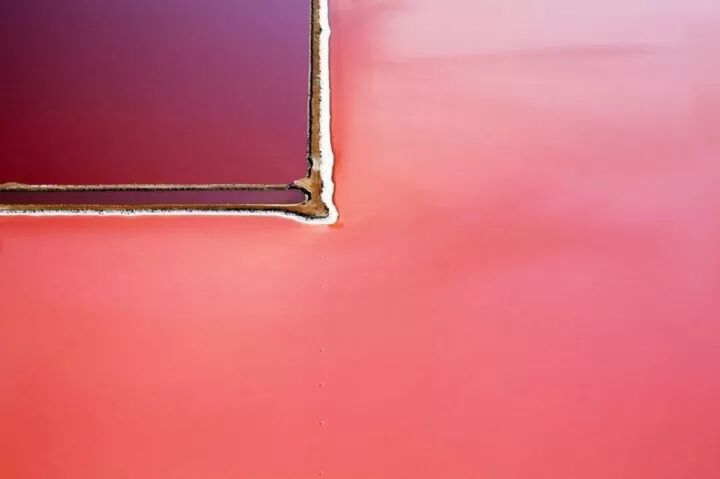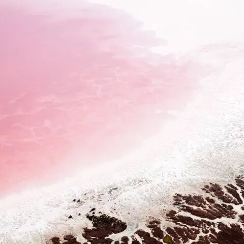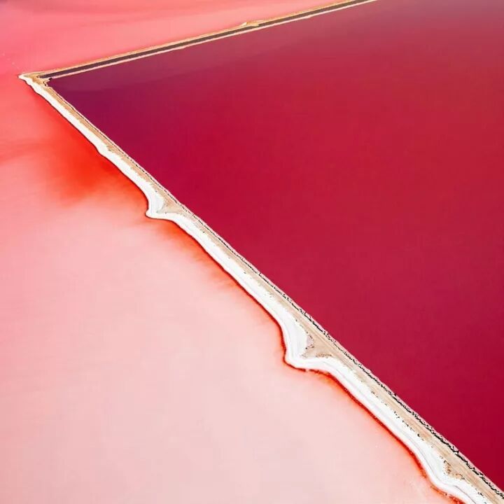 如果站在湖的附近,你可能看到的是一片淡粉色的湖水,并不那么梦幻。然而鸟瞰整一片湖水的话,赫特泻湖的娇媚就可被尽收眼底。