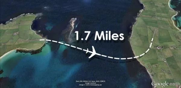 世界上最短的商业航线是,苏格兰洛根航空公司韦斯特雷和帕帕韦斯特雷之间的航班,距离只有1.7英里(约2.8公里),从起飞到降落只要75秒到180秒,最快的一次甚至只花了53秒。