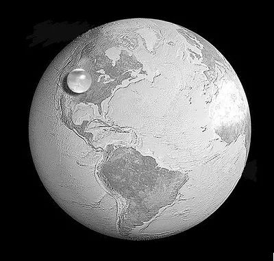 地球上所有水汇集起来只能形成直径为1385公里的“水球”,地球水资源总量与地球大小的对比图,左上角小球为科学家绘制的包含地球所有水资源的“水球”。