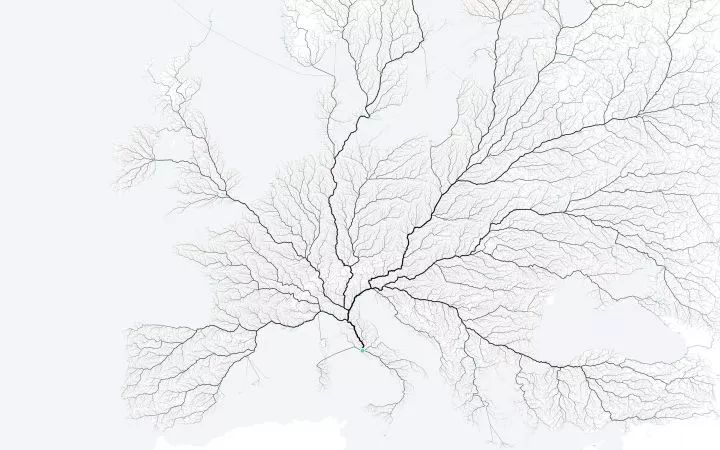 这就是“条条大路通罗马”!图中路线汇聚的蓝点即为罗马。