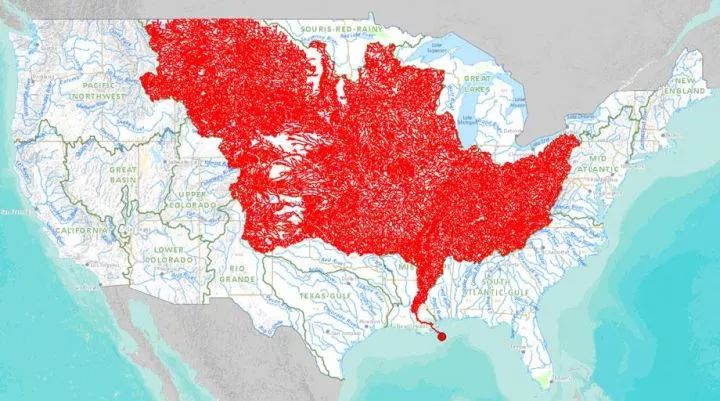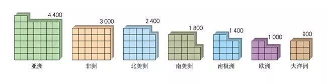 世界上有5%的人口住在图中的蓝色区域,同时,世界上同样有5%的人口住在红色区域。