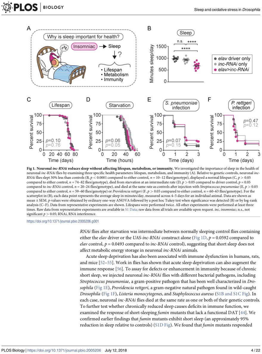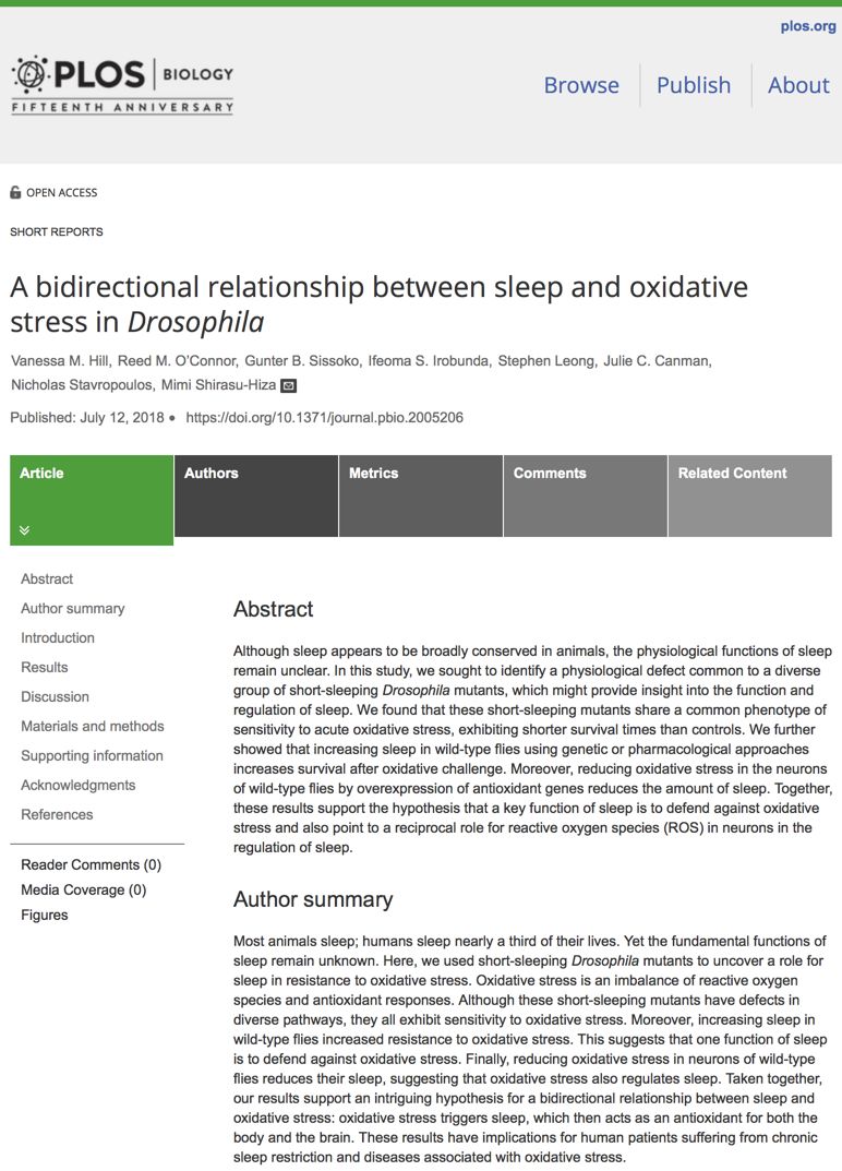论文《A bidirectional relationship between sleep and oxidative stress in Drosophila》来自哥伦比亚大学,刊于《PLOS Biology》,本文由中国生物技术网 ( WechatID : biotech-china ) 编译,原题《睡眠的重要作用——抗氧化!》