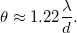 只有当两个不同光源的艾里斑不重叠时,才可以分辨。这个极限角分辨率用光线进入眼睛时的夹角θ表示,它取决于孔的大小d,以及光的波长λ