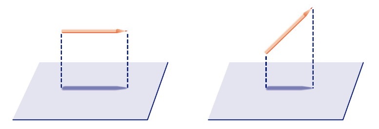 因此空间和时间是相关的概念。被我们称为“空间”和“时间”的东西都与对方的速度相关。如图所示,对于一个相对于杆子静止的观察者来说,空间是水平的,时间是垂直的。但是从另一个观察者的角度,如果他相较于第一个观察者是运动的,他眼中的空间和时间的方位就是不同的。