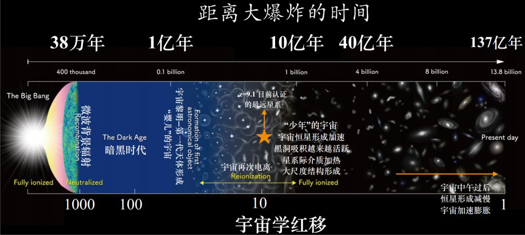 ►图1:宇宙演化模型图,图片来源:日本国立天文台(笔者略作修改、注释)