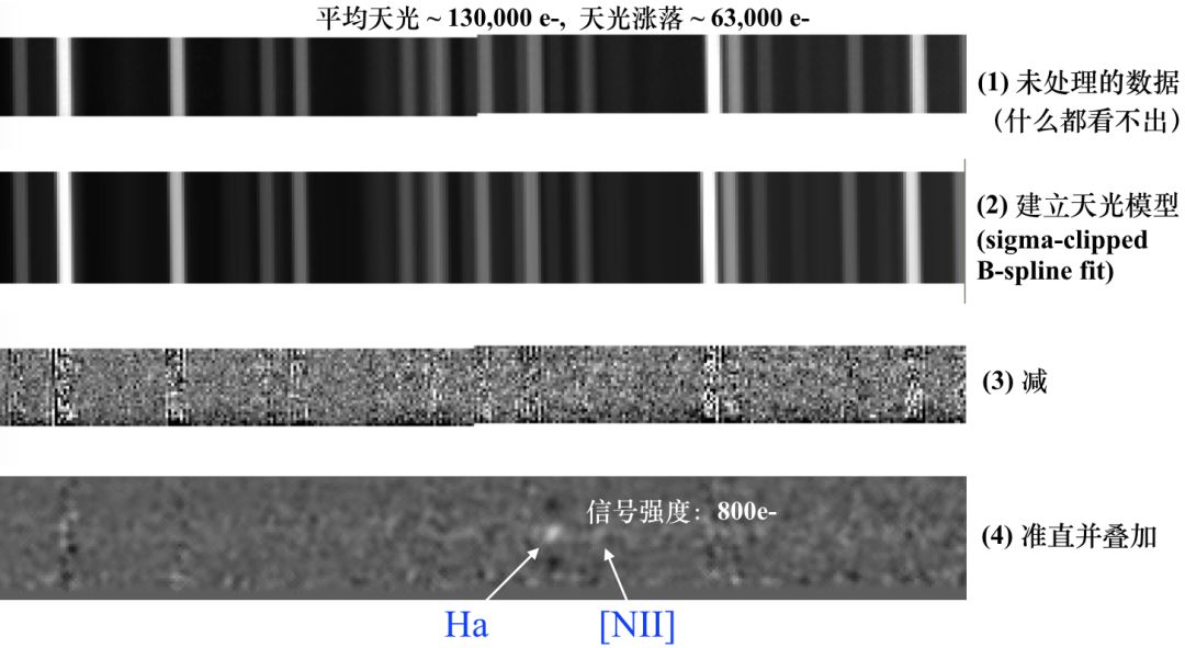 ►图11:笔者利用大双筒望远镜(LBT)得到的红外光谱数据实例。天文探测信号常常比背景低几个数量级。天文对低信噪比信号处理要求高,方法丰富。相关技术可应用于需要低信噪比探测的其他军民等学科。天文学可与这些学科深入融合,共同发展进步。