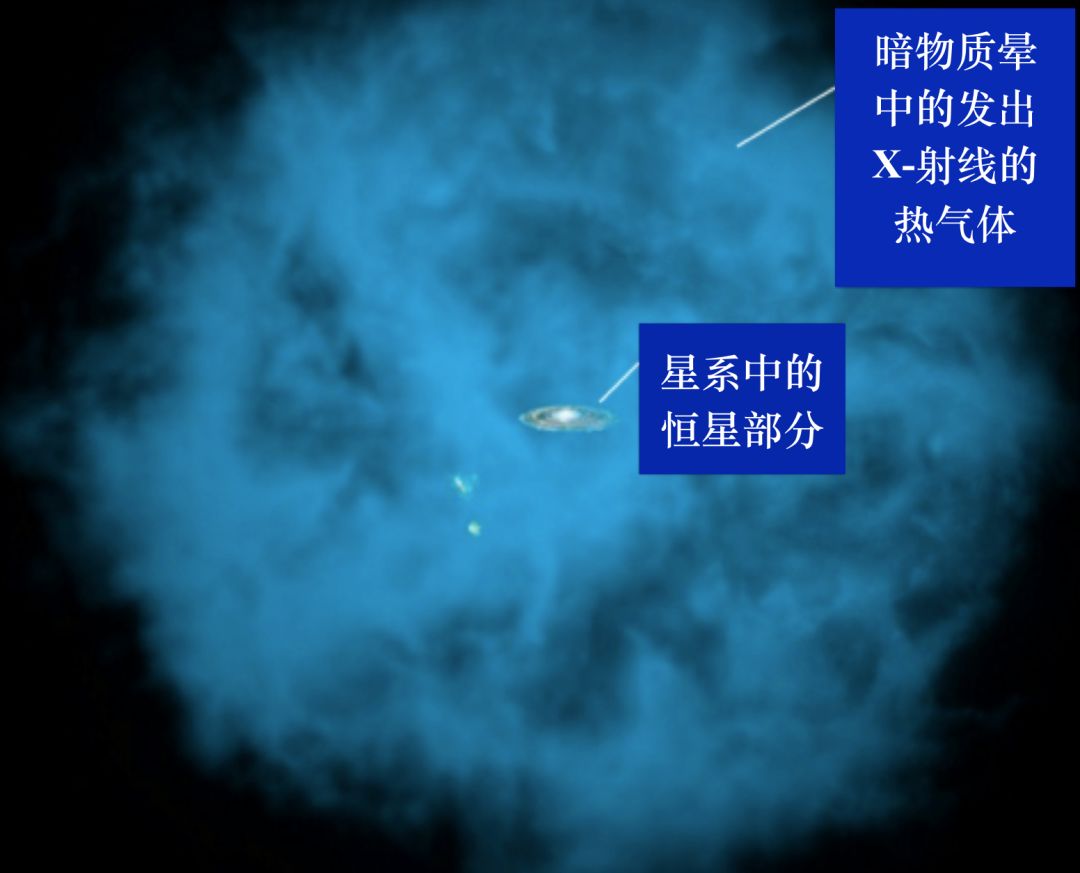 ►图9:我们银河系的巨大暗物质晕里可能蕴藏着大量释放X-射线的热气体,这些气体在光学不容易被探测。图片修改自引文[7]中的图。