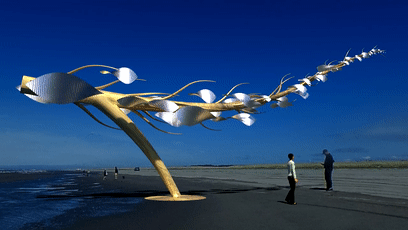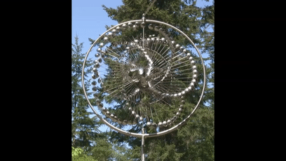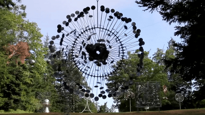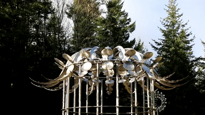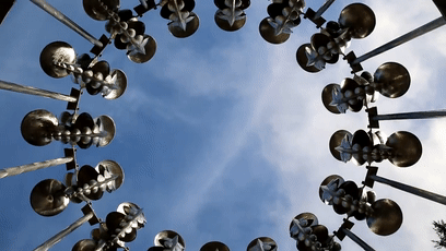 这些在风中优雅旋转的金属雕塑名叫「风动力雕塑」,全部由钢铁打造。而它们之所能够自己动,是因为Anthony Howe在制作时参考了风车的原理。