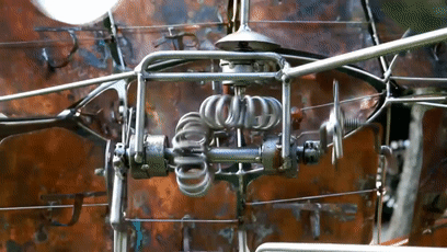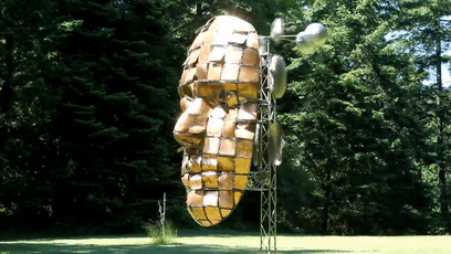 而为了测试效果,他一般会带着作品的某一部分开车去机场兜风,或者干脆摆到天台上接受大自然的洗礼,以此检验风力是否能够让雕塑正常运转。