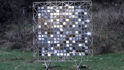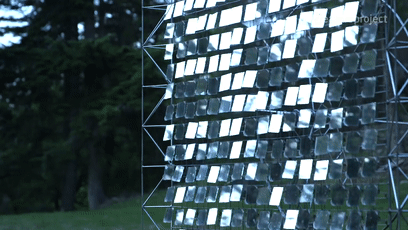 其中这种设计最明显的是这座「My Father's Influence」,它就像是一块LED屏幕可以疯狂闪烁,但实际上发光的是256面不断摇摆的镜子: