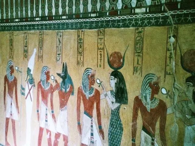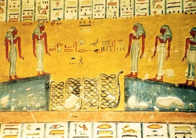 帝王谷 内部壁画 图中可以看到眼镜蛇、圣甲虫、阿努比斯等形象