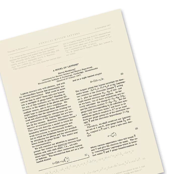 1967年11月20日,史蒂芬·温伯格(Steven Weinberg)在物理评论快报上发表的一篇标志性的论文:《轻子模型》(A Model of Leptons),为高能粒子物理学在20世纪后半叶的发展指明了方向。