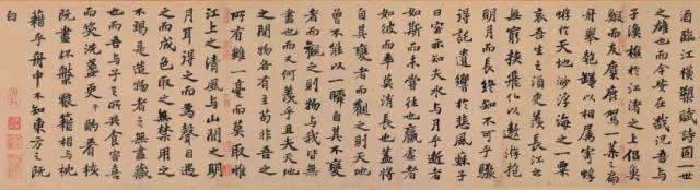 苏轼的《赤壁赋》也写在这段时间。《前赤壁赋》原迹藏在台北故宫博物院,文末尚附有小注:“轼去岁作此赋,未尝轻出以示人,见者盖一二人而已。钦之有使至,求近文,遂亲书以寄。多难畏事,钦之爱我,必深藏之,不出也。”被诬陷之后苏轼也知道小人的可怕,知道这件文学名著的背景,再读东坡这几句委婉含蓄之词,真是要觉得啼笑皆非啊!