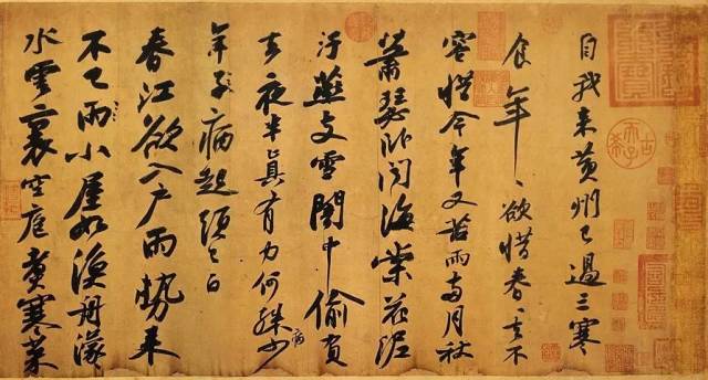 黄庭坚跋:东坡此诗似李太白,犹恐太白有未到处。此书兼颜鲁公、杨少师、李西台笔意,试使东坡复为之,未必及此。他日东坡或见此书,应笑我于无佛处称尊也。