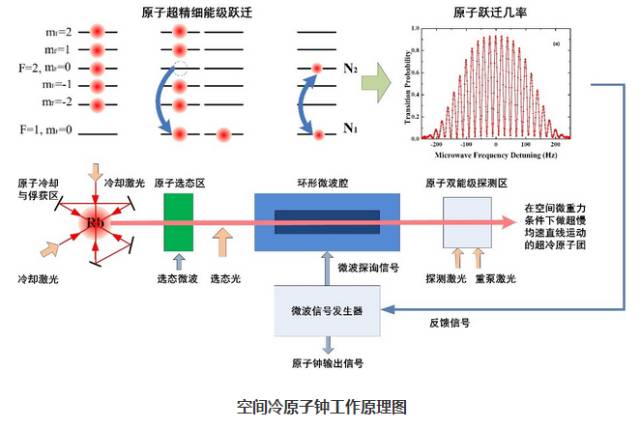 在地面上,由于受到重力的作用,自由运动的原子团始终处于变速状态,宏观上只能做类似喷泉的运动或者是抛物线运动,这使得基于原子量子态精密测量的原子钟在时间和空间两个维度受到一定的限制。而在空间微重力环境下,原子团可以做超慢速匀速直线运动,基于对这种运动的精细测量可以获得较地面上更加精密的原子谱线信息,从而可以获得更高精度的原子钟信号。可以预期,空间冷原子钟将成为目前空间最高精度的原子钟。