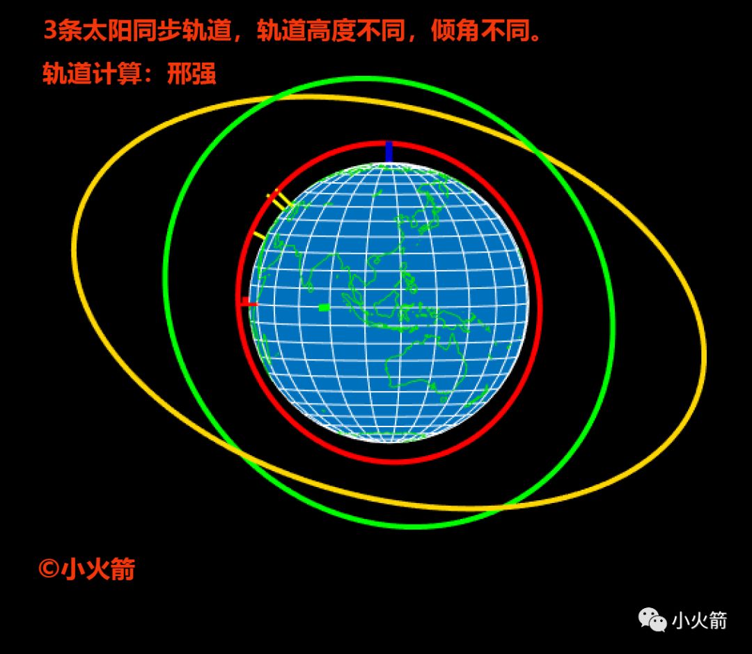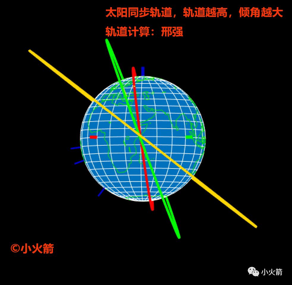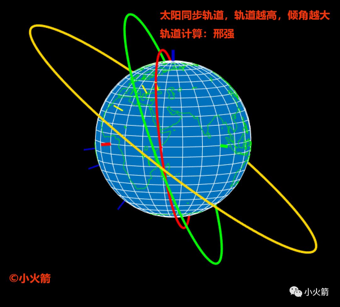 太阳同步轨道的倾角,并不总是在98°,而是随着轨道高度的不同,有不同的取值,小到96°,大到135°甚至更大,都是有可能的。