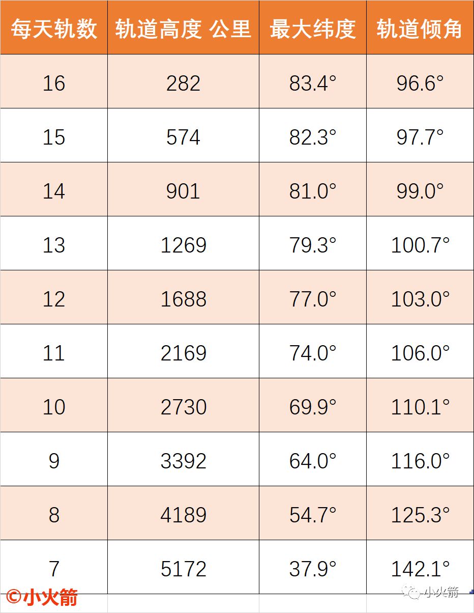 当轨道高度抬升到901公里的时候,对应的太阳同步轨道倾角就是99.0°了。