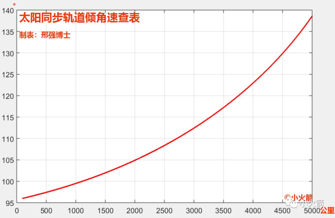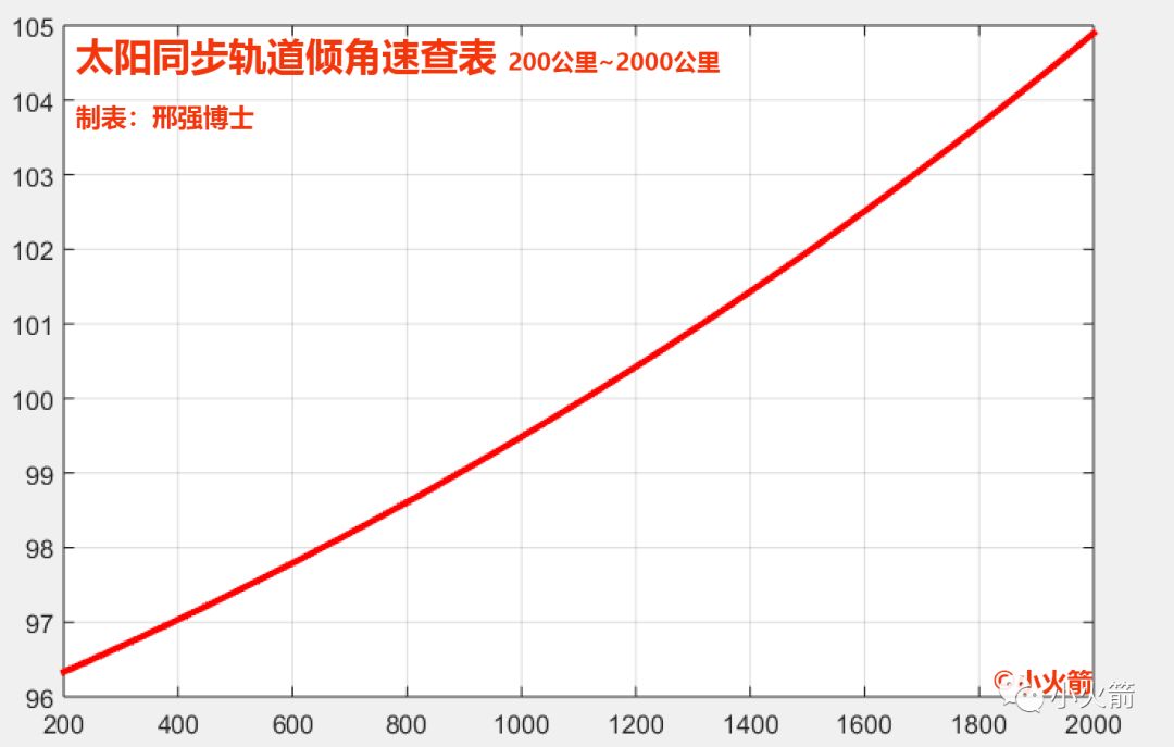如果好友需要知道每个轨道高度对应的太阳同步轨道倾角,而又不想像上上图那样计算的话,小火箭也满足你: