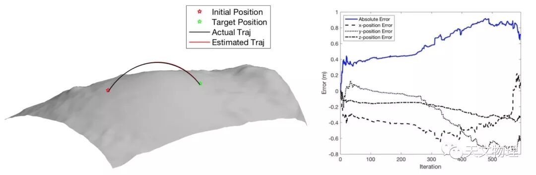 跳跃轨迹从初始位置到Itokawa表面的目标位置。图片: Kalita & Thangavelautham