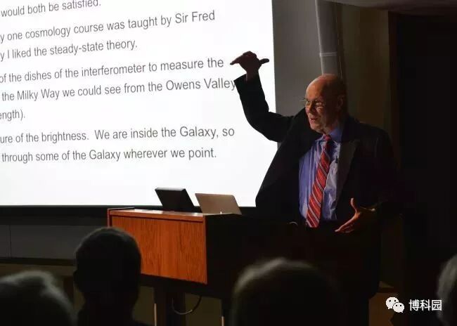 1964年罗伯特·威尔逊(Robert Wilson)和阿诺·彭齐亚斯(Arno Penzias)一起发现了宇宙微波背景辐射(CMB),为大爆炸理论奠定了坚实的基础。威尔逊和彭齐亚斯因这一发现获得1978年诺贝尔物理学奖(他们与苏联科学家彼得·卡皮察(Pyotr Kapitsa)分享了这个奖项)。图片:Clive Grainger (CfA)