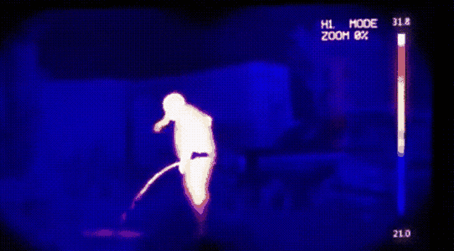 你和我虽然不发光,但是你我的体温比周围的环境温度要高,比环境物品发出更多的红外线。甚至包括我们打的喷嚏放的屁,在这样红外线摄像头的记录下都无所遁形,温度越高,红外线越强。