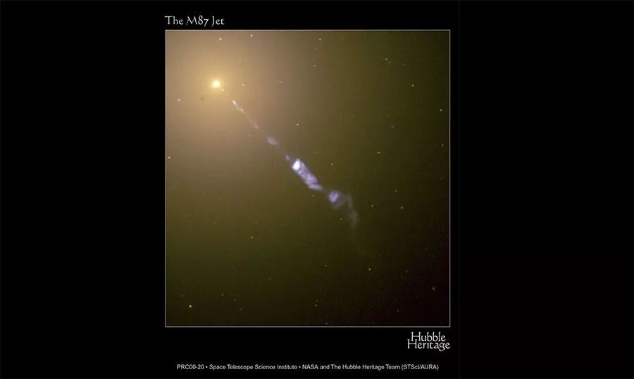 哈勃望远镜拍摄的M87星系中心黑洞的喷流(来源:Hubblesite)