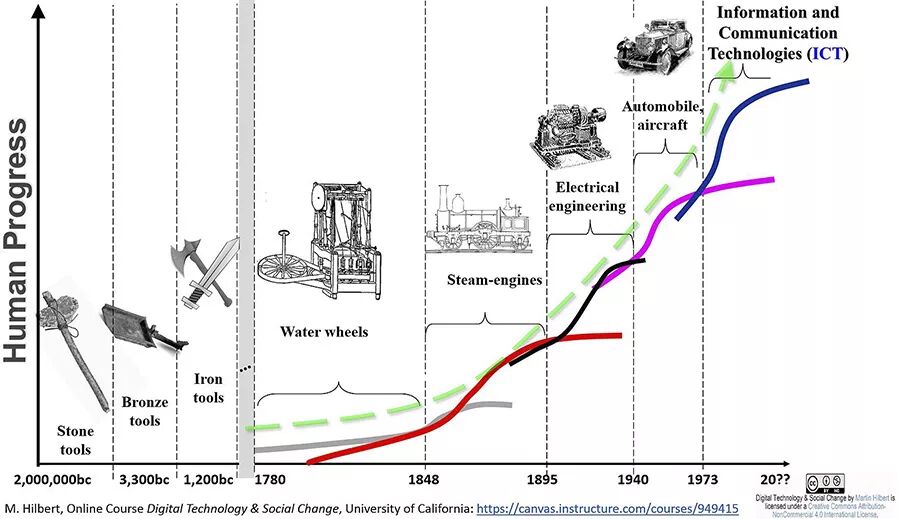你想想,在一两千年以前人类还在刀耕火种。340年以前,瓦特才发明了蒸汽机,莱特兄弟的第一架飞机是1903年才发明的,而第一部手机的发明是1973年,也就是不到50年以前。
