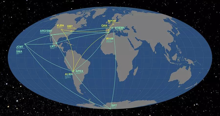 他们加在一起同步拍摄,利用一种叫做甚长基线干涉仪的技术(Very Long Baseline Interferometry),让这些跨越半个地球的射电望远镜组合起来,达到一个直径相当于地球尺寸的超大望远镜的效果。望远镜的角分辨率大约等于波长除以有效直径。有效直径越大,就能够分辨张角越小的天体。