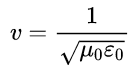 对比一下电场和磁场的波动方程,你会发现它们是形式是一模一样的(就是把E和B互换了一下),这样,它们的波速也应该是一样的。对比一下经典波动方程的速度项,电磁波的速度v自然就是这样: