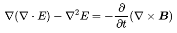 它告诉我们:电场的旋度的旋度等于电场散度的梯度减去电场的拉普拉斯。有了它,电磁波的方程立马就可以推出来了。