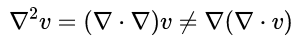 从拉普拉斯算子▽²的定义我们可以看到,似乎它只能对作用于标量函数(因为你要先取梯度),但是我们把▽²稍微扩展一下,就能让它也作用于矢量函数V(x,y,z)。我们只要让矢量函数的每个分量分别去取▽²,就可以定义矢量函数的▽²: