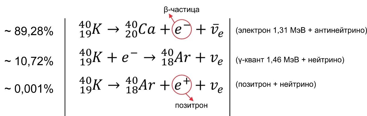 钾40有多种衰变途径,其中一种是β+衰变,释放出正电子并衰变为氩40。