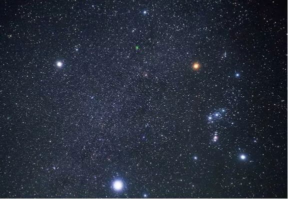 图:猎户座与参宿四(图中红色圆圈所圈)